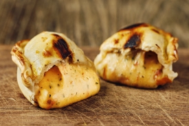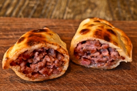 Fugazzeta Karamellisierte Zwiebeln, Mozzarella, Rohmilch-Raclette, Emmentaler
