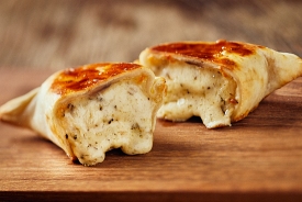 Humita Süßmais, gewürzt mit Koriander, roten Paprikaschoten, Béchamelsauce und Schnittlauch