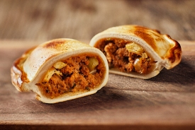 Sobrasada Mallorquinische Sobrassada IGP (leicht gewürzte Chorizo), Mozzarella, karamellisierte Zwiebeln